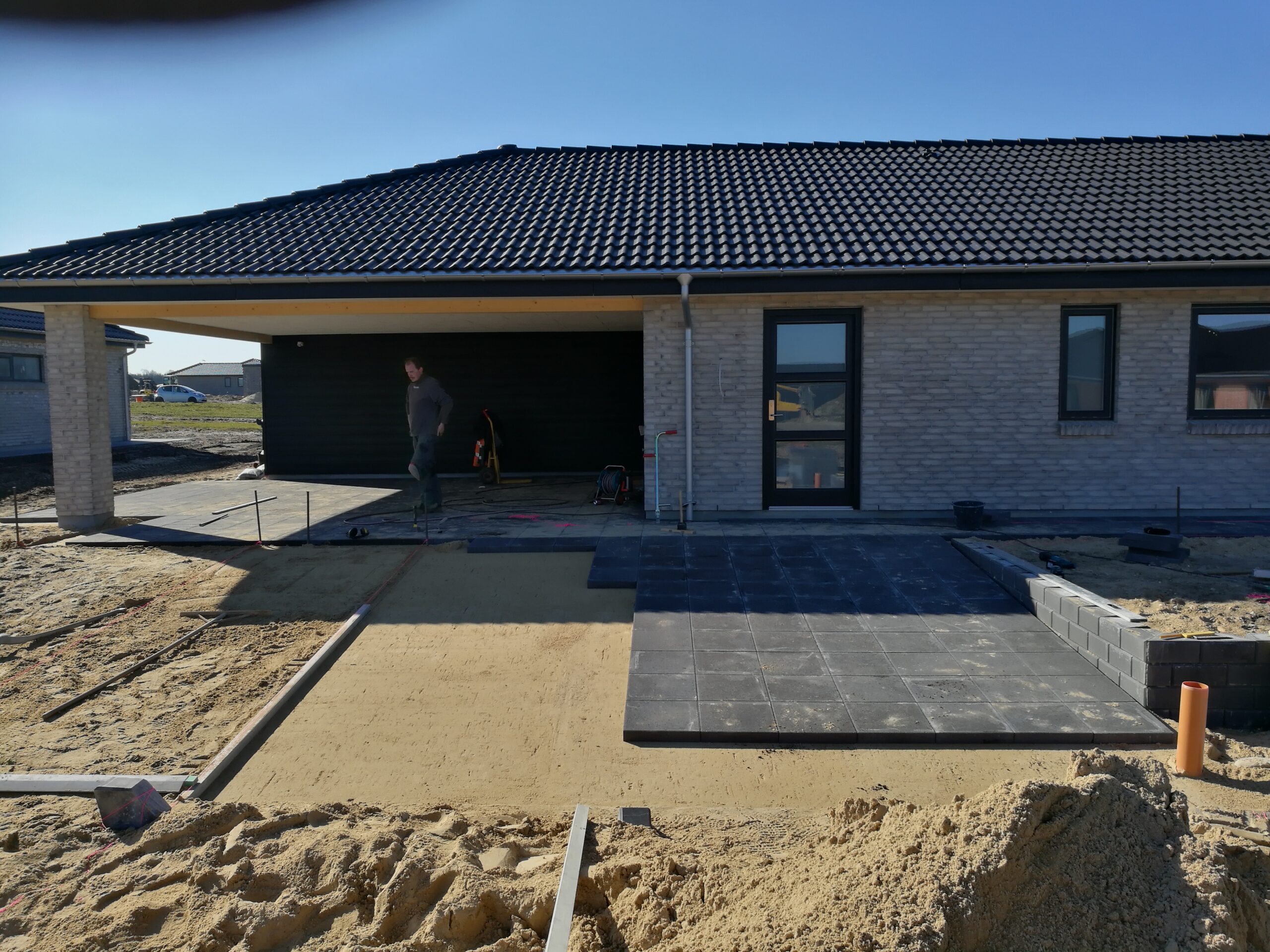 Vi udfører alt i anlægsarbejde som indkørsler, terrasser, stier, og støttevægge.